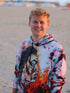 A Colourful Hoodie depicting the image of a Warrior in this Fiery and Intense Print.